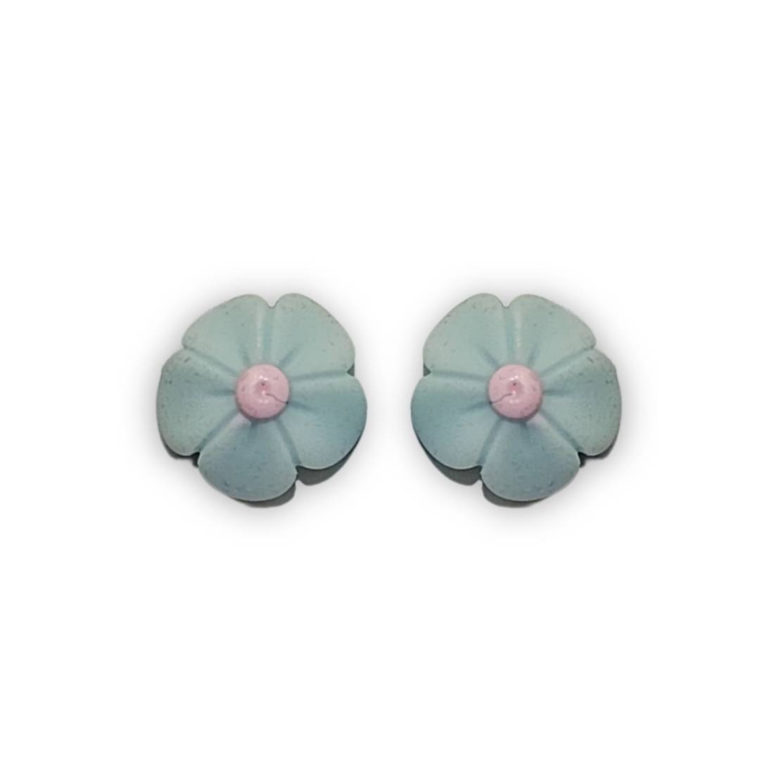 Bring a breath of calm to your accessory collection with Blush Breeze Studs from Jewel Canvas. These soothing pastel blue floral studs are crafted in a matte finish, centered with a sweet blush pink dot for a dreamy, delicate touch.