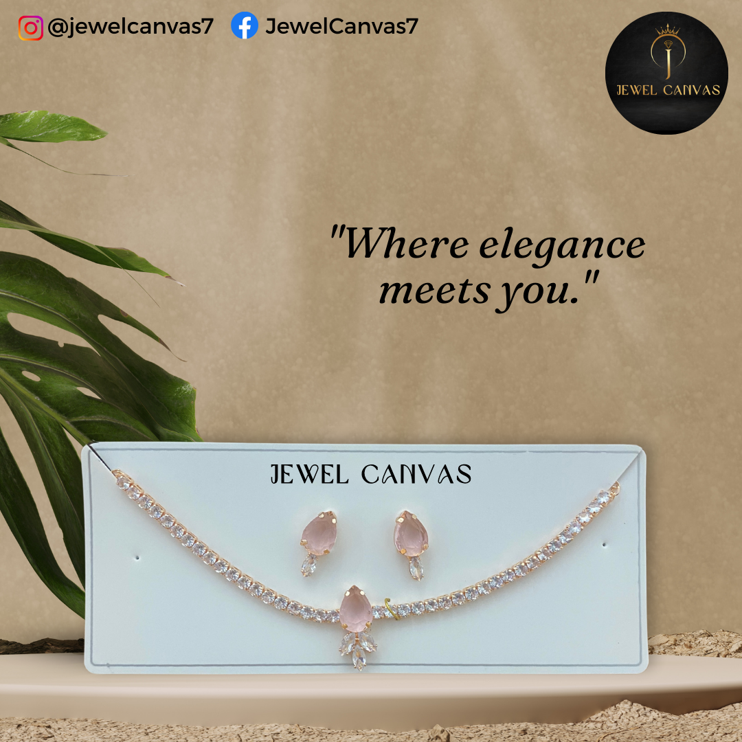 Where elegance meets you — our Blush Pink Teardrop Necklace Set is designed to accentuate your grace and style. This sophisticated set features a delicate necklace adorned with a soft blush pink teardrop pendant, accompanied by matching earrings to complete the look. The gentle pink hue of the stones adds a touch of femininity and elegance, making it ideal for weddings, special gatherings, and formal occasions. Each stone is framed in a gold-tone setting, reflecting timeless beauty and refined charm.